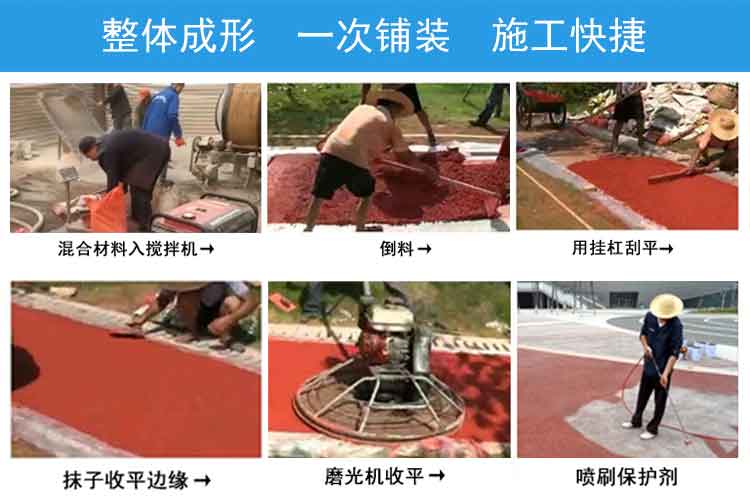 1.攪拌:透水地坪拌合物中水泥漿的稠度較大,且數(shù)量較少,為了使水泥漿能保證均勻地包裹在骨科上,宜采用強(qiáng)制式攪拌機(jī),攪拌時(shí)間為5min以上。